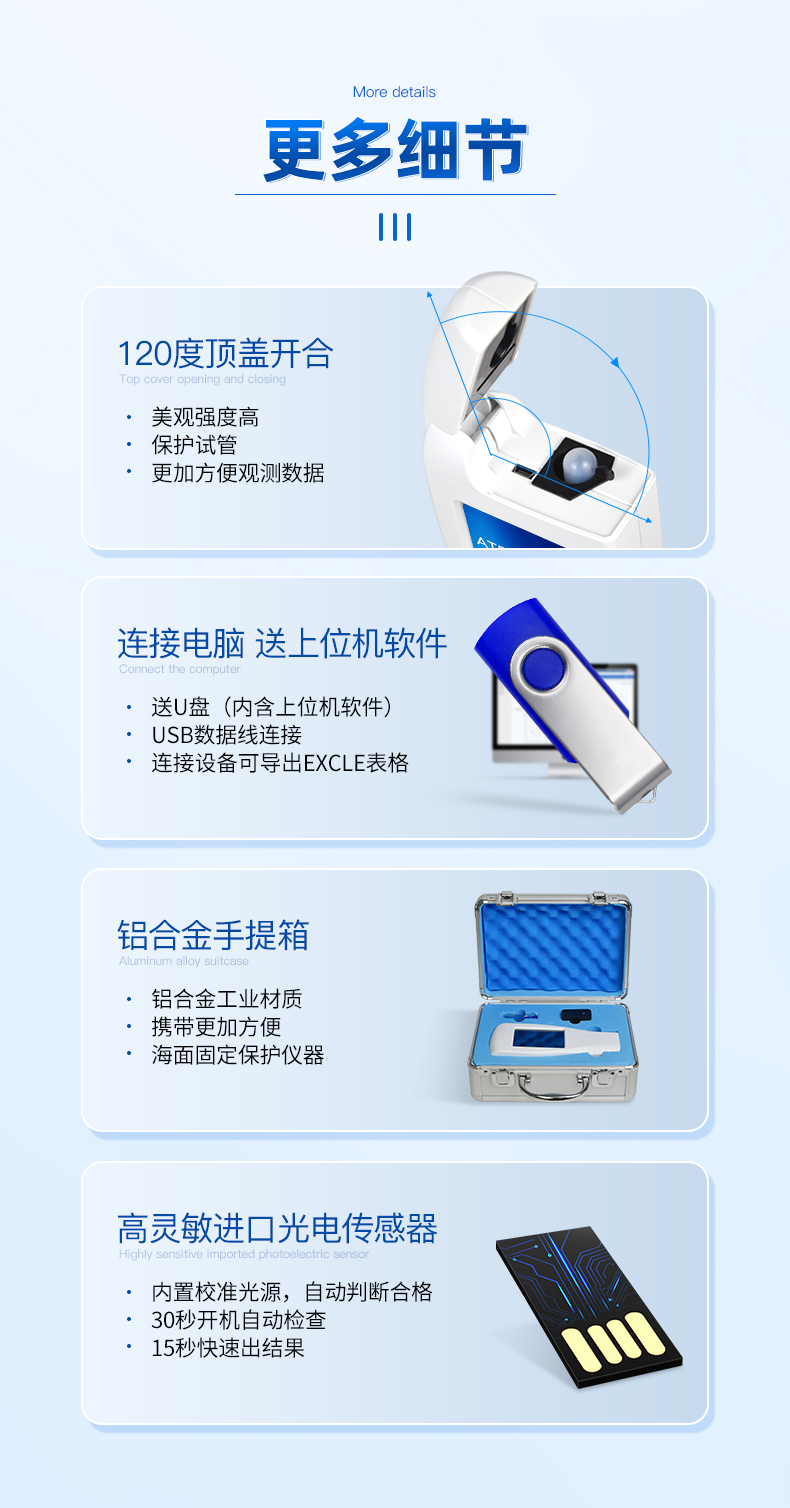 體驗(yàn)更好 —— 試子套管采用插拔式靈活設(shè)計(jì),可定期清洗長(zhǎng)期使用,延長(zhǎng)儀器壽命。