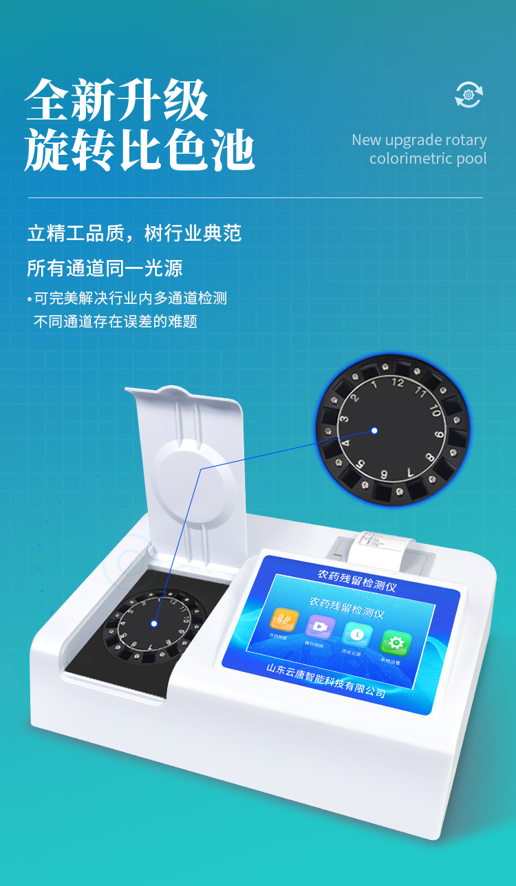 旋轉(zhuǎn)比色農(nóng)殘儀12個檢測通道,可以同時測試多個樣品,循環(huán)檢測,即放即檢,每個樣品由程序控制分別獨立工作,不會互相干擾。 熱線:133-7109-8225掃一掃獲取產(chǎn)品報價單