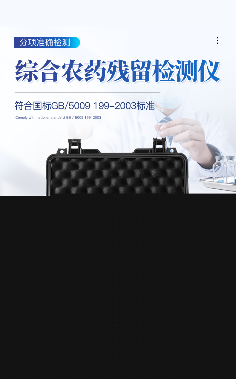 產(chǎn)品簡(jiǎn)介:綜合農(nóng)藥殘留檢測(cè)儀,除了遵循國(guó)標(biāo)對(duì)有機(jī)磷和氨基甲酸酯類(lèi)農(nóng)藥進(jìn)行檢測(cè)外,還可以針對(duì)具體農(nóng)藥進(jìn)行分項(xiàng)準(zhǔn)確檢測(cè),包含··· 熱線:133-7109-8225掃一掃獲取產(chǎn)品報(bào)價(jià)單