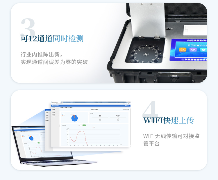 3、儀器帶有監(jiān)管平臺,數(shù)據(jù)可局域網(wǎng)和互聯(lián)網(wǎng)數(shù)據(jù)上傳,檢測結(jié)果直接傳至食品安全監(jiān)管平臺。進行區(qū)域食品安全監(jiān)管及大數(shù)據(jù)分析處理與數(shù)據(jù)統(tǒng)計,檢測區(qū)域食品安全長短期動態(tài),達到食品安全問題預(yù)估、預(yù)警 。