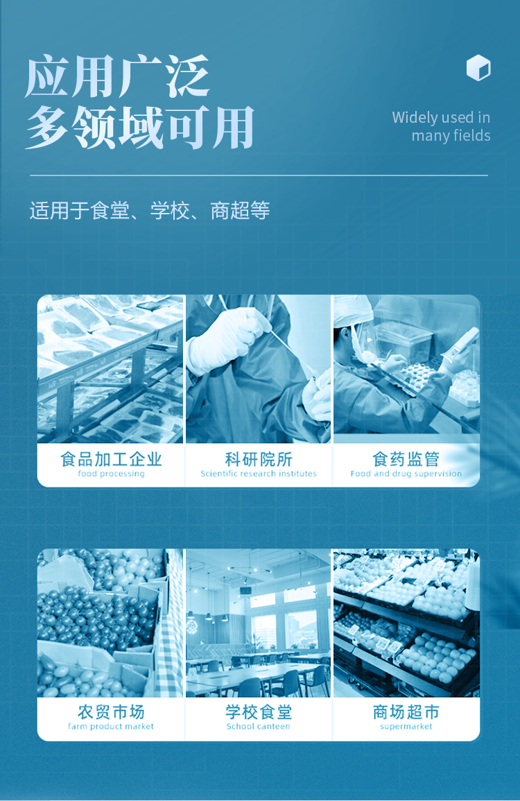 山東云唐智能科技有限公司生產(chǎn)的農(nóng)藥殘留檢測儀廣泛應(yīng)用于主要用于蔬菜、水果、茶葉、糧食、農(nóng)副產(chǎn)品等食品中農(nóng)藥殘留的快速檢測,依據(jù)國標(biāo)GB/T5009.199-2003進行檢測,適用于果蔬茶生產(chǎn)基地以及農(nóng)貿(mào)批發(fā)銷售市場現(xiàn)場檢測,餐館、學(xué)校、食堂、家庭果蔬加工前的安全速測等。
