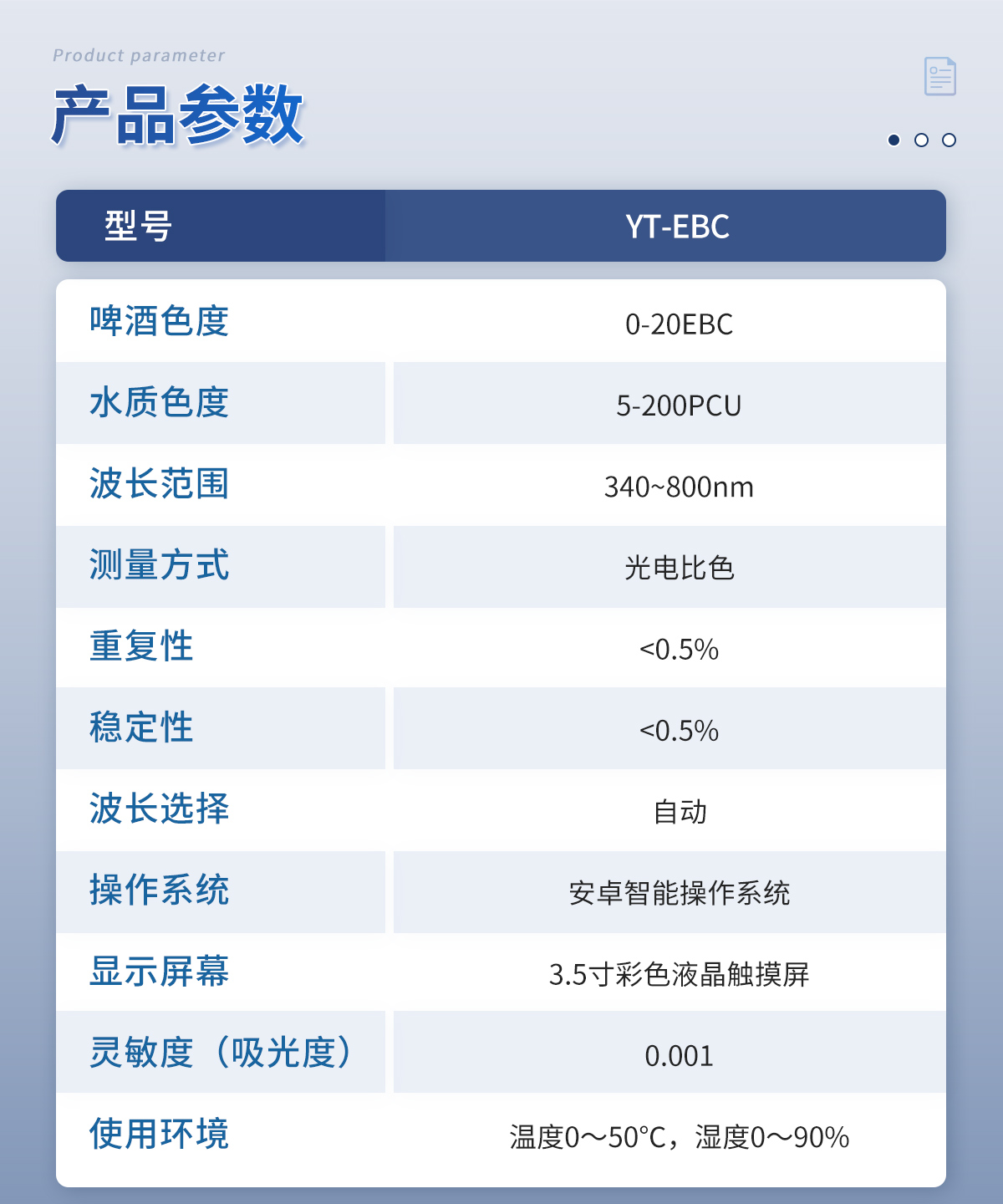 啤酒色度測定儀采用鉑-鈷標(biāo)準(zhǔn)色度法,用于測定溶解狀態(tài)的物質(zhì)所產(chǎn)生的顏色,儀器采用國家標(biāo)準(zhǔn)GB5750中所規(guī)定的鉑-鈷色度標(biāo)準(zhǔn)溶液進(jìn)行標(biāo)定,采用鉑-鈷色度作為計(jì)量單位。