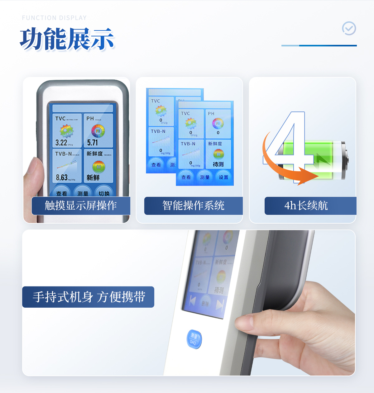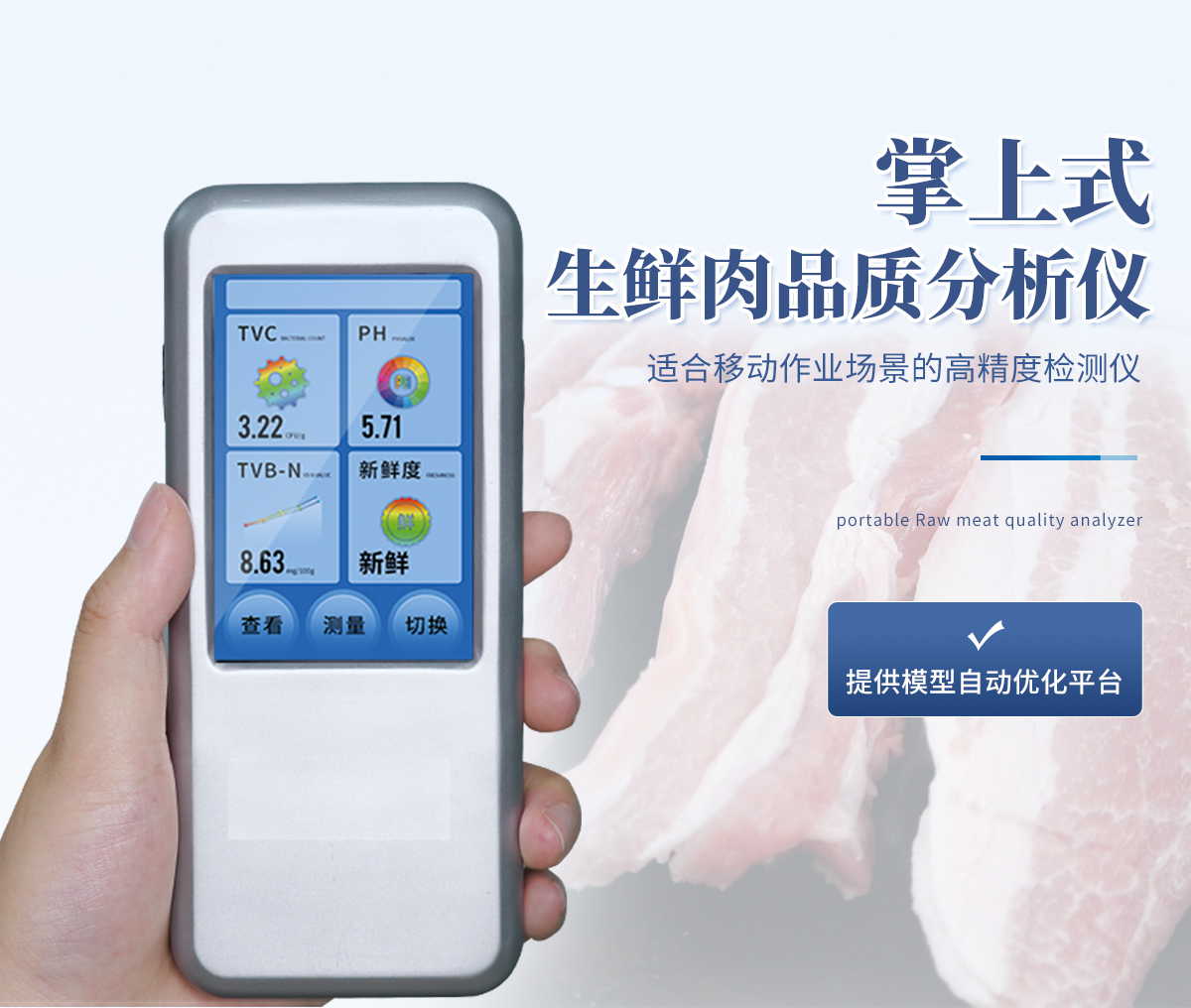 產(chǎn)品簡介:聯(lián)合中國農(nóng)業(yè)大學(xué)彭彥昆教授團隊研發(fā)的掌上式生鮮肉新鮮度分析儀,可用于檢測生鮮肉的TVC、pH、TVB-N、新鮮度、L*、A*、··· 熱線:133-7109-8225掃一掃獲取產(chǎn)品報價單