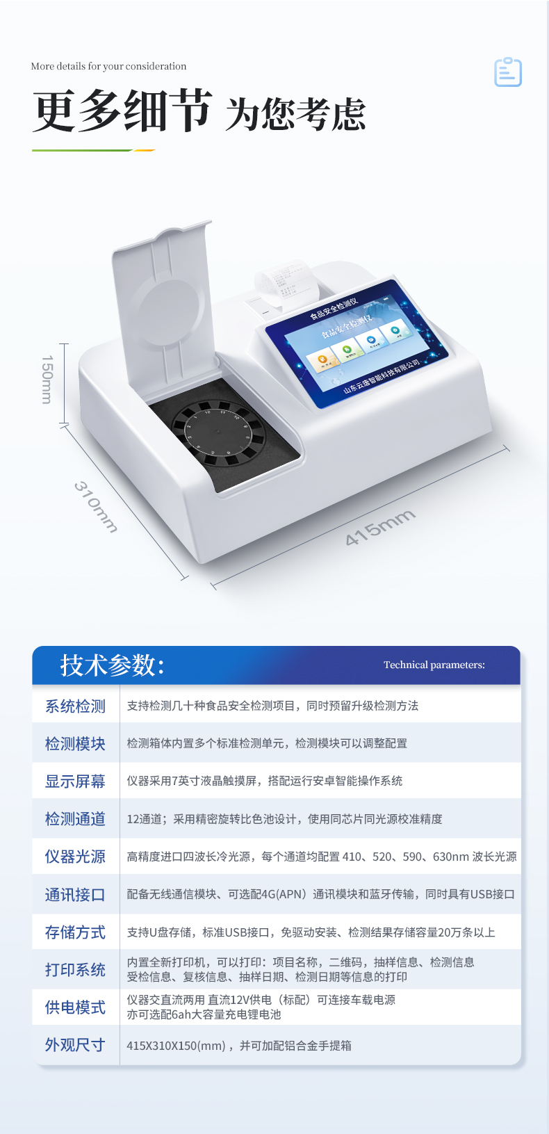 高精度食品安全檢測儀YT-SA60Z產(chǎn)品介紹:高精度食品安全檢測儀可快速檢測60多項目,包含:濫用食品添加劑、非食用化學物質(zhì)、農(nóng)藥··· 熱線:133-7109-8225掃一掃獲取產(chǎn)品報價單