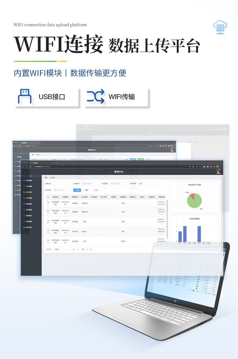 8.3、數(shù)據(jù)監(jiān)管系統(tǒng):同步對接監(jiān)管平臺,數(shù)據(jù)可局域網(wǎng)和互聯(lián)網(wǎng)數(shù)據(jù)上傳,檢測結(jié)果可選擇直接傳至食品安全監(jiān)管平臺。進行區(qū)域食品安全監(jiān)管及大數(shù)據(jù)分析處理與數(shù)據(jù)統(tǒng)計,檢測區(qū)域食品安全長短期動態(tài),達到食品安全問題預估、預警。