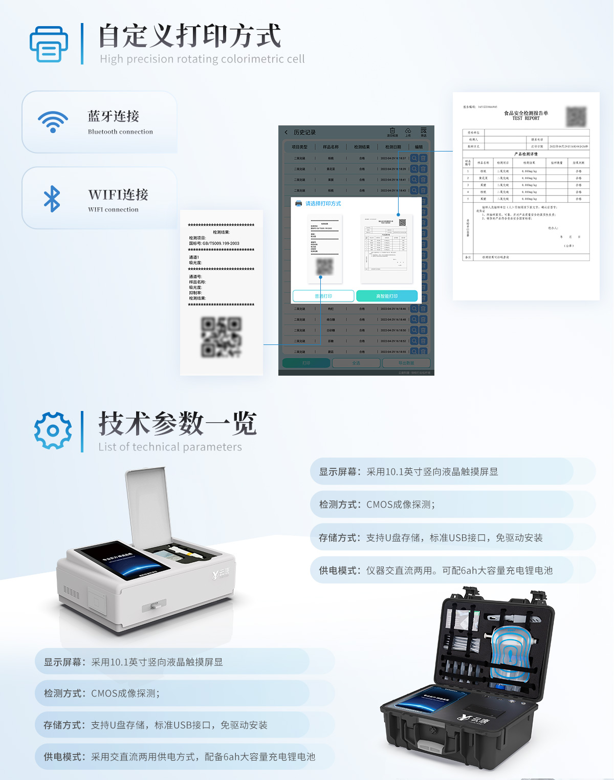 10、儀器具有 wifi 聯(lián)網(wǎng)上傳、RJ45網(wǎng)線連接功能,可以快速上傳數(shù)據(jù)。同步對(duì)接監(jiān)管平臺(tái),數(shù)據(jù)可局域網(wǎng)和互聯(lián)網(wǎng)數(shù)據(jù)上傳,檢測(cè)結(jié)果直接傳至食品安全監(jiān)管平臺(tái)。進(jìn)行區(qū)域食品安全監(jiān)管及大數(shù)據(jù)分析處理與數(shù)據(jù)統(tǒng)計(jì),檢測(cè)區(qū)域食品安全長(zhǎng)短期動(dòng)態(tài),達(dá)到食品安全問(wèn)題預(yù)估、預(yù)警。