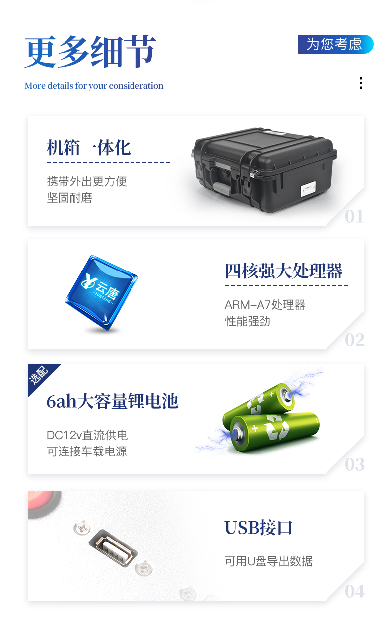 1、機箱采用工業(yè)級ABS工程塑料箱,方便攜帶,穩(wěn)固耐用,便于流動測試。