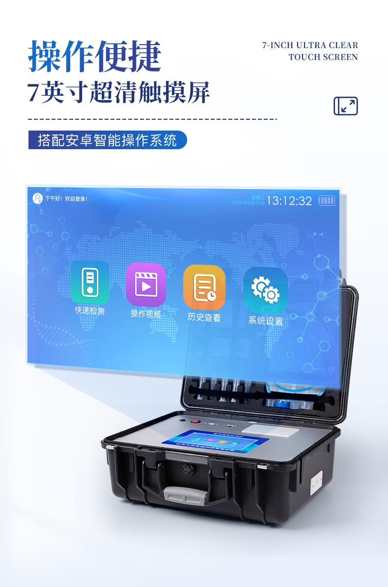 6、一體化便攜式快檢設(shè)備,滿(mǎn)足現(xiàn)場(chǎng)及流動(dòng)檢測(cè)使用需求,能夠在同一軟件下實(shí)現(xiàn)所有檢測(cè)項(xiàng)目的檢測(cè),并可通過(guò)同一窗口直觀(guān)顯示檢測(cè)結(jié)果。
